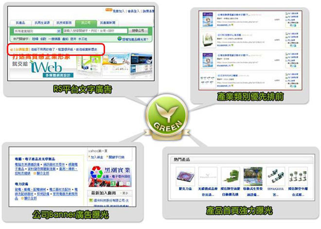 「全球綠色商機網」是現代企業從事電子商務活動最有效的貿易平台,也是協助「製造」、「供應」與「需求」等三方面搜尋商機的最佳動態電子業務員,更是為業者創造綠色競爭優勢、讓我們生活的這片土地之環境生態保育更盡善盡美的綠色推手。