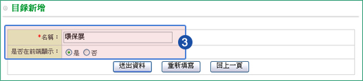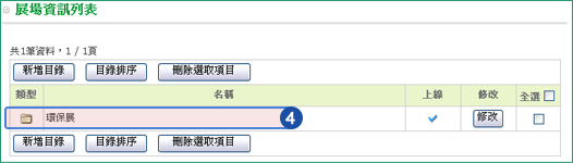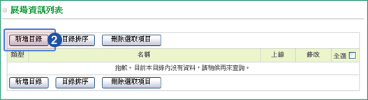 點選 新增目錄 為有效管理展場資訊,需建立目錄進行分類。