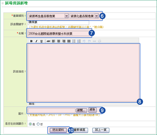 點選 展場資訊管理 > 選擇展場資訊列表(供應訊息)